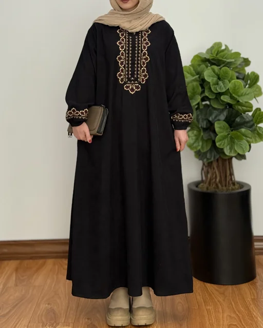 یه پیراهن مانتویی با قد کاملا بلند که در عین پوشیده بودن شیک هم هستش