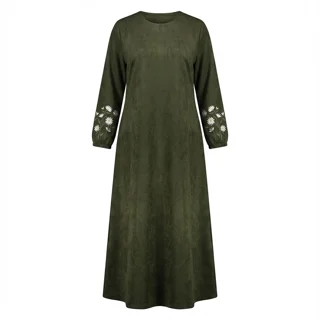 قسمت بالا تنه مغزی دوزی شده و سر آستین گلدوزی شیک و ظریفی کار شده